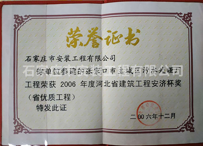 2006年度河北省建筑工程安濟(jì)杯獎(省優(yōu)質(zhì)工程)
